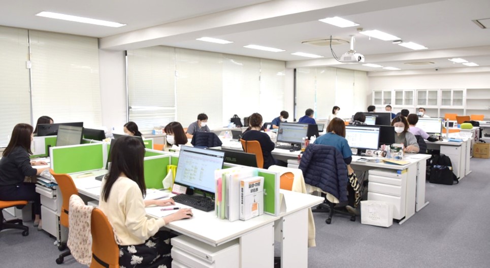 ※移転後の山王院のオフィスの写真です。移転後まだ2年ほどですが既にだいぶ満席です。