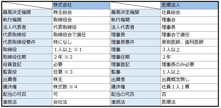 その員数は、各医療法人の定款で規定されますが、原則は3名以上です。また、最高決定機関を構成するという点では、株式会社でいう「株主」と同様ですが、株主とは異なる点としては、出資を有していなくとも資格を得ることができること、出資額に関係なく、社員一人につき一つの議決権(つまり社員総会は多数決で決議します)を持つことが挙げられます。
